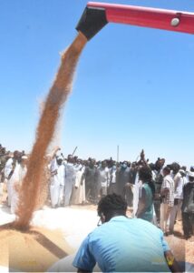 من جانبه رحب السيد/ محافظ مشروع الجزيرة المهندس ابراهيم مصطفى بزيارة معالي السيد رئيس الوزراء وتشريفه لعمليات حصاد القمح. وحيا القوات المسلحة والقوات المساندة لها، وشهداء معركة الكرامة الذين كان لهم الفضل في تهيئة الأجواء وتحقيق هذا الإنتاجية الوفيرة من القمح.